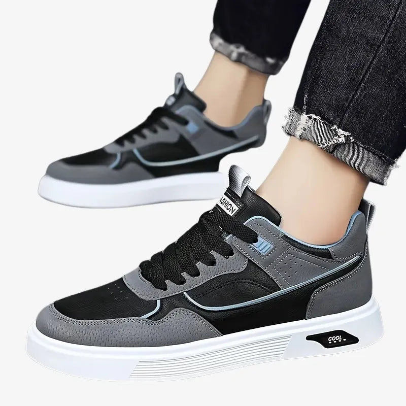 Ces baskets urbaines combinent des nuances de gris et de noir pour un look élégant et polyvalent. Leur design structuré avec des détails contrastés apporte une touche de modernité idéale pour un usage quotidien.