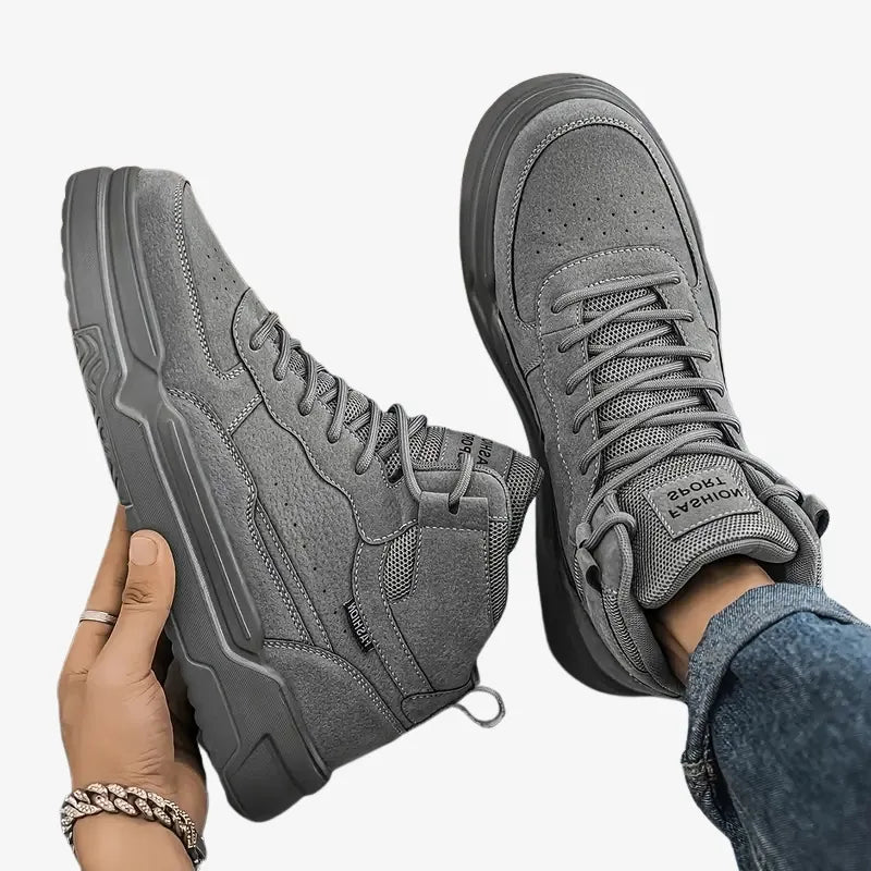 Les Baskets Urban Steel séduisent par leur design audacieux et leur teinte gris acier qui s'intègre parfaitement aux tenues urbaines et décontractées. Leur silhouette montante apporte une touche moderne qui ne passe pas inaperçue.