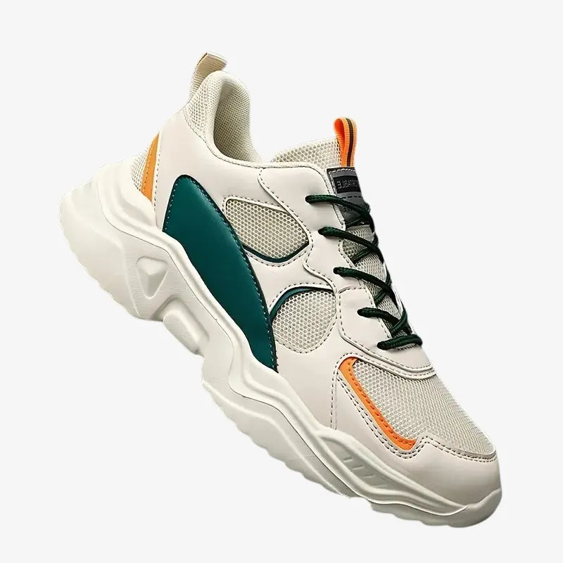 Les Baskets UrbanWave affichent un design audacieux avec des touches de vert et d'orange sur fond blanc éclatant. Leur allure sportive et tendance les rend idéales pour affirmer votre style en toute occasion.
