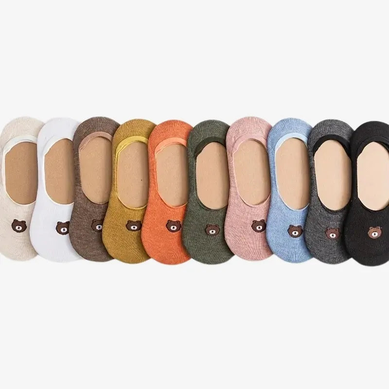 Ces chaussettes invisibles avec un petit motif ourson ajoutent une touche de douceur et d’originalité à votre tenue. Leur design minimaliste et leurs couleurs naturelles les rendent faciles à assortir avec différentes chaussures. Elles sont idéales pour celles et ceux qui aiment les détails subtils tout en gardant un style discret.