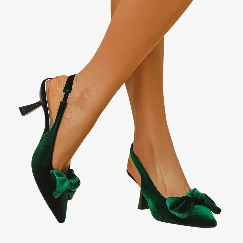 Ces escarpins en velours sont l’incarnation de l’élégance et du raffinement. Leur silhouette effilée et leur délicat nœud à l’avant apportent une touche de féminité et de sophistication à toutes vos tenues.