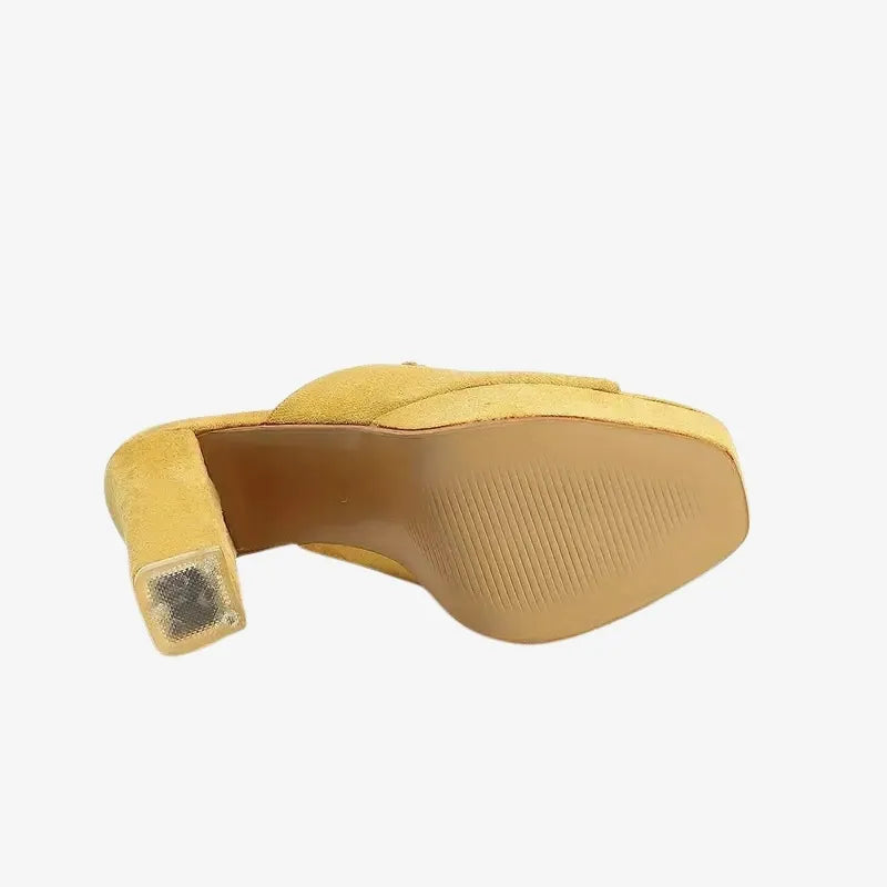 Fabriquées avec des matériaux de haute qualité, ces mules allient résistance et esthétique. Le tissu suédé apporte une texture douce et luxueuse, tandis que la semelle robuste garantit une excellente stabilité.
